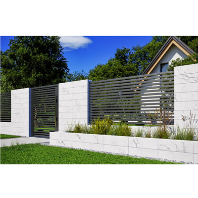 The elongated shape of the Fronton Residence 60x18x20 cm blocks provides them with an innovative design. It is a modular and complete wall system, consisting of basic blocks, closed blocks and with edge profiling for mounting LED lighting strips. Fronton is not only a fence, it is also an ideal material for building protective walls and flower beds in the terrace and entrance zone. Using closed roofing blocks, we can build aesthetically finished walls without the need to use concrete roofs. The tongue-and-groove connection facilitates assembly and ensures the stability of the development.