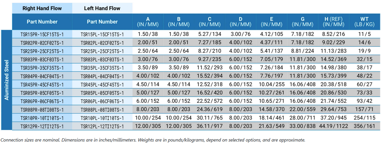 - Custom configurations, materials, connections, reversible flow, overall dimensions, etc.