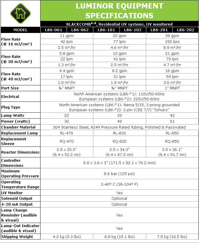 LUMINORModel Blackcomb 6.0 -Residential UV Water Disinfection