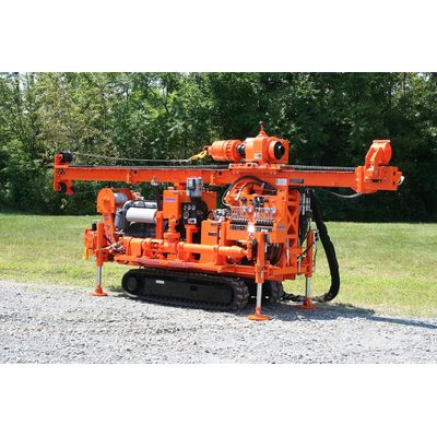 - Undercarriage: The entire drill is mounted on a welded structural frame and is self-propelled by rubber crawler tracks. The track drive is operated with a remote radio control system.