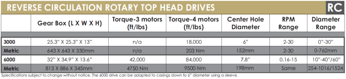 Ready for Reverse Circulation Top Head Drives. RC exhaust through the center of the Top Head permits max drill pipe length and passes larger cuttings. Less tool wear means less replacement than a side discharge swivel. Compact 3000 series Top Head or versatile and powerful 6000 series Top Head.