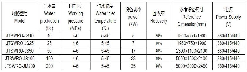 - Reverse osmosis membrane: adopts American Hydra, Dow or GE seawater membrane