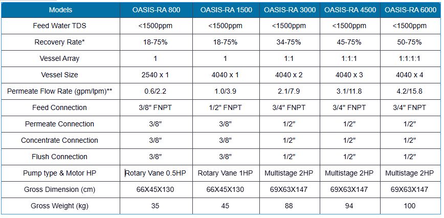 - Permeate Water (TDS) up to 999ppm