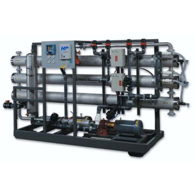 The HF4 are available in configurations ranging from 2,200 to 43,200 gpd. Standard features include 5-micron pre-filter and housing, 20 inch, motor thermal protection, pre/post-filter and primary/final pressure gauges, alarms:low inlet pressure, high amp draw, high permeate conductivity, and remote machine on/off capability. Deluxe features in addition to the standard include casters, upgraded PLC control package, digital pH probe system, alarms: high-low pH, and chemical dosing system.