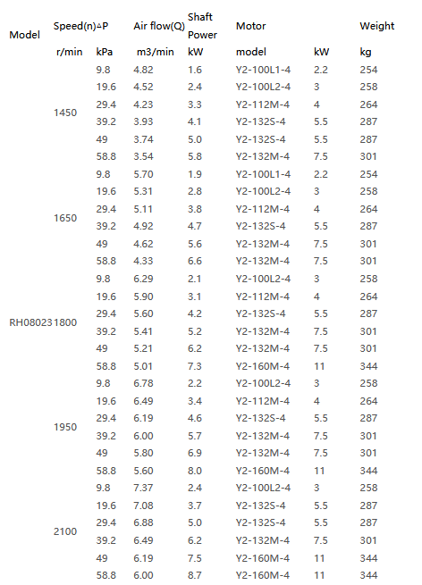 The blower is a high-speed, high-efficiency, low-noise three-lobe rotor, which avoids contact between the rotors due to slight axial displacement, and can ensure a small spiral clearance to improve efficiency