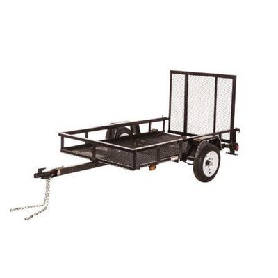 4` x 6` Economy Utility Trailer 2,000 GVW. Standard features include: wire mesh floor, safety chains, incandescent lighting package, 4 prong electrical plug, a mesh gate, and removable tongue!