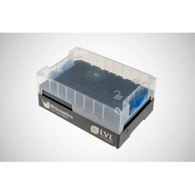 Plastic rack enables automation systems, rapid 2D barcode accessioning, and easy storage of 96 RHINOstic samples.