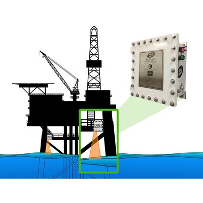 The Slick Sleuth® Rig Guard™ is designed for use on offshore platforms and rigs and offers proven optical technology for real-time monitoring and alert of oil leaks and spills in offshore environments. Each platform-based system consists of one to four oil spill detectors, housed in explosion-proof, submersible enclosures, that are fully integrated with wireless communication for real-time alerts and remote system command/control. The system is non-contact, requiring minimal maintenance and no operational expense. The mounting range can vary from near-surface, up to maximum 10 meters above sea surface.