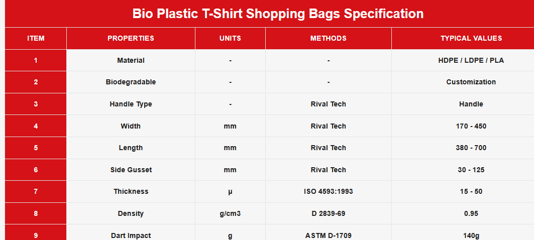 The T-shirt bags are among the most common retail store supplies, making them perfect for carrying a variety of items. Rival manufactures and supplies T-shirt bags in plastic, biodegradable, and compostable material. The T-shirt bag is the most economical way to package items, widely used in supermarkets, grocery stores, vegetable wholesale markets, and other industries. We are flexible packaging specialists and can also produce your bags in standard polythene, recycled, degradable or compostable material, depending on your usage and requirements.