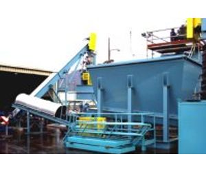 Normally the material is transferred to the receiving hopper of the feed system using a front-end loader or crane. An inclined conveyor takes the material from the hopper and transfers the feed to the ATDU through a double tipping valve assembly. Material to be furnished to the ATDU is to be all two- (2) inch minus (5 cm).