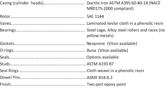 Inlet Connection 3` ANSI Class 150 Flat Face Flange.Outlet Connection 2` ANSI Class 150 Flat Face Flange.Operating Speed Range 600 rpm through 1465 rpm.Maximum Allowable Working Pressure 150 psig (10.2 barg).Maximum Allowable Operating Temp 350°F (176°C).Shaft Seal Single face mechanical or double bellows.Bearings Steel cage, Alloy steel rollers and races (no yellow metals).Lubrication Once through oil injection system - 7 points (by others).Drive Type Direct couple or belt driven, suitable for VFD.Shaft End 1.625` diameter at coupling