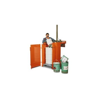 The 5030-N HD model has a special application for safe compaction of hazardous waste (glass/cans/tins containing residual paint or chemicals) directly into drums. A steel pallet is included for stable placement of the drum inside the compactor.