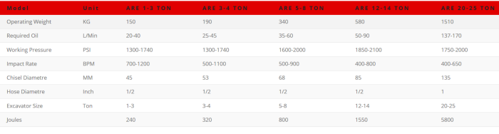 AR Equipment’s rock breakers are designed in Korea, with the highest quality standards. AR Equipments’ rock breakers are designed with the highest quality standards. Our models are easy to understand and straightforward, making selection easy and uncomplicated. All of our rock breakers come standard with two moils, both a chisel type and a pointed type. Hoses are also included. Our rock breakers are serviced in-house at our workshop and come with a 12 month parts warranty.