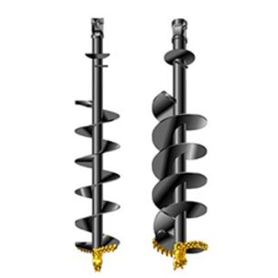For use in fracturable and non-fracturable hard materials, limestone, concrete, dolomite, schist, lava type rock, for Hard Drilling, our double row design is the best overall rock auger design available. Long life, minimizes vibration and shock load to the digger truck while providing high penetration rates.