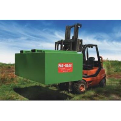 The Pac-Bloc works with 20, 30, and 40 yard containers and is available in 3500 or 5500 pounds.
