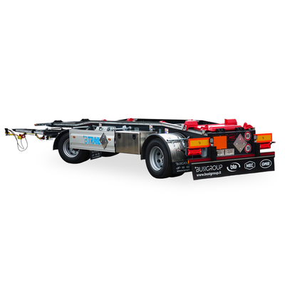 The MEC +B Trail roll-off trailers RBG-2A and RBG-3A are the result of years of experience and listening to our customers' needs, safety first and foremost. The container locking system uses 4 internal pneumatic self-aligning clamps to follow any deformation of the container side members.