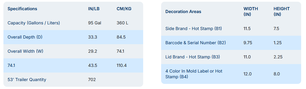 - Permanently imprint cart bodies and/or lids with customized Hot Stamp Branding of Logos and Recycling Slogans; Multi-Colored In Mold Labels (IML`s) are also available