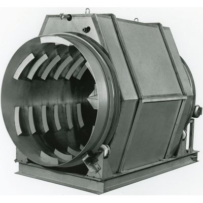 The strainer drum of the roll-dry internally. fed strainer is constructed of helical wound. stainless steel, providing easy flow through. of liquids. Perforated drum available upon. request. The strainer drum of the wring-dry. internally fed strainer is constructed of perforated. stainless steel, providing easy flow. through of liquids. Drive systems are available. for electric, hydraulic and pneumatic. operations.