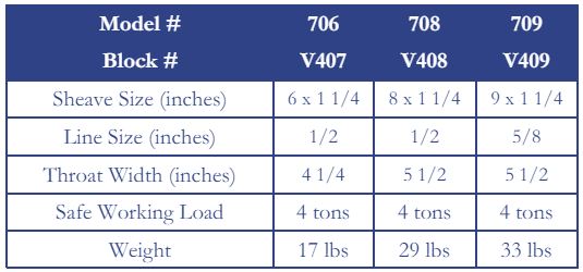Compact, Lightweight and adaptable to many uses requiring fast running lines. Features manganese steel sheaves, Timken bearings, alloy pins and steel sides. Available with swivel shackle (-S)