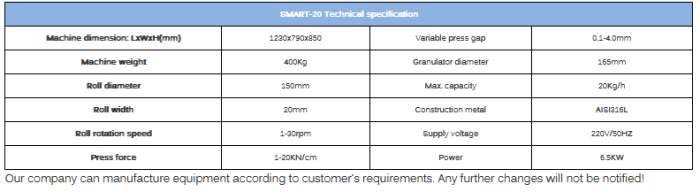 This machine is made of stainless steel, and the nonmetallic material which contact with powder all meet with FDA requirements. In addition, LGC20 Roller Compactor has a fully enclosed granulating system which is cleaner and more in line with GMP requirements.