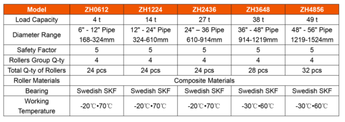 ZH-Pipeline Construction - Model ZH0612, ZH1224, ZH2436, ZH3648 and ZH4856 -Roller Cradle for Pipeline Construction