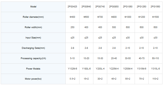 The counter-roller crusher pulls the material on the roller surface into the crushing cavity, so that the material is crushed by the stress mainly caused by squeezing, and is taken out of the crushing cavity by the rotating roller and discharged as the crushed product.