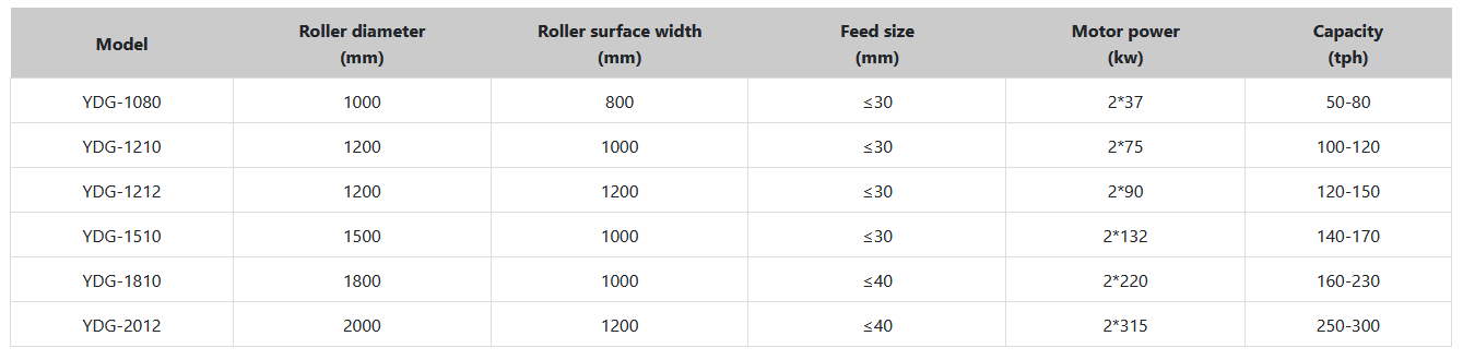 The double-roller crusher uses two high-strength wear-resistant alloy crushing rollers to crush the material by the high extrusion force generated by the relative rotation. After the material enters the gap between the two rollers (V-shaped crushing chamber), it is squeezed by the relative rotation of the two crushing rollers. Under the action of force and shear force, under the extrusion, shearing and grinding, the material is broken into the required particle size and discharged from the discharge port.