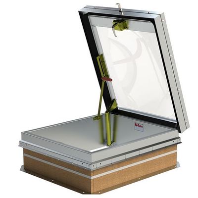 Type GS, 36" x 30" (914mm x 762mm), and Type GSS (Special Size) roof hatches provide all the security and convenience of a BILCO roof hatch with the added benefits of a skylight. Products feature a polycarbonate dome cover, aluminum construction, and easy one-hand operation. Type GSS and type GS roof hatch products are available in all standard roof hatch sizes and custom sizes can be supplied when specified. (Patent Pending)