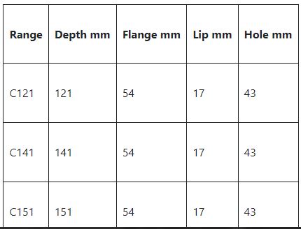 All holes are 14mm diameter unless stated otherwise. All holes are punched in pairs on standard gauge lines. Detail sheets for BW’s standard range of Cee Purlins (C Purlins) and Sleeves are available in PDF format from the Downloads section.