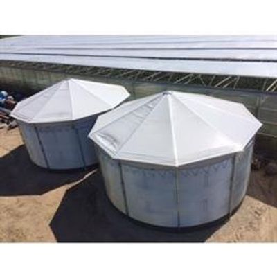The BUWAcone is a self-supporting roof system which can completely cover and protect your tank. The roof system is designed for medium-sized lightweight construction tanks with a diameter from 10 meters up to 18 meters. The roof is based on an uniquely designed aluminum frame which does not require a central support pole. After the installation of the frame, canvas sheets are placed between the roof’s specially crafted framework. The roof is strong enough to carry a 75 kg/m2 snow load. It is protects against UV-light and is rainwater, filth and bird proof. The BUWAcone roof system in combination with a BUWAtank is suitable for industrial applications and for the drinking water business.