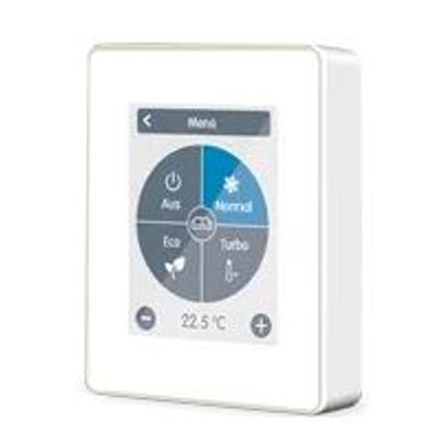 Elegant room controller with capacitive TFT touch panel for comfortable remote control and optimisation of the heating and cooling system in combination with LHCC, XHCC and °CALEONboc Clima.