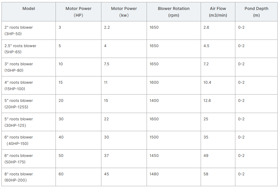 AirMMax AMLT roots blower is three lobe roots blower, and roots blower is perfectly matched to aerotube and aeration hose for fine bubble bottom aeration system and has been used in aquaculture especially for high density shrimp farming and fish farming.