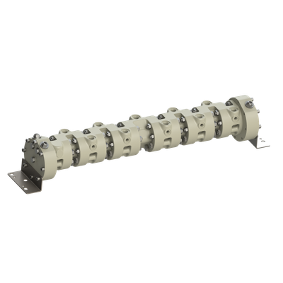 - Flow divider built with as many as 20 flow elements (i.e. 20 discharges).