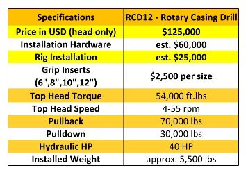 Designed to operate in most rig masts. Drill up to 12 inch casing. Instant grip/release system. Custom Installation Performed at Atlas.