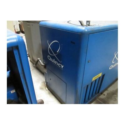 100 cfm 125 psi, Quincy rotary screw air compressor, Model QGB 25. Packaged design. Capacity range is from 108 cfm 100 psig to 90 cfm @ 175 psig. Compressor housing has a 71 dBa sound level. Driven by a 25 HP 3/60/230/460 volt motor. Package dimensions are 63" L x 43" W x 47" H, 1290 lbs.