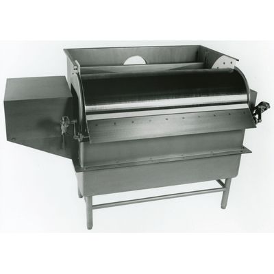 The strainer drum is constructed of helical wound steel wedgewire. This insures a non-binding, drain free, self cleaning surface that is easily cleaned in place for maximum sanitary operation. Wedgewire strainer can be easily interchanged with alternate clearance strainers involving minimal mechanical adjustments.