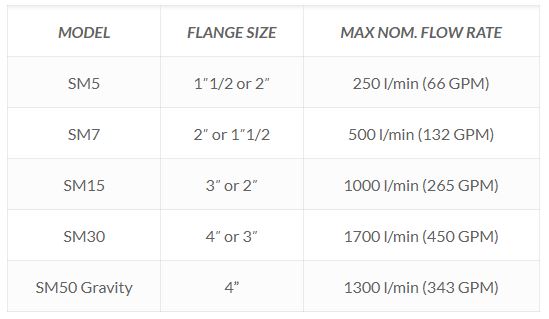 Flow Rates: 25 l/min up to 1700 l/min (7 GPM up to 449 GPM).