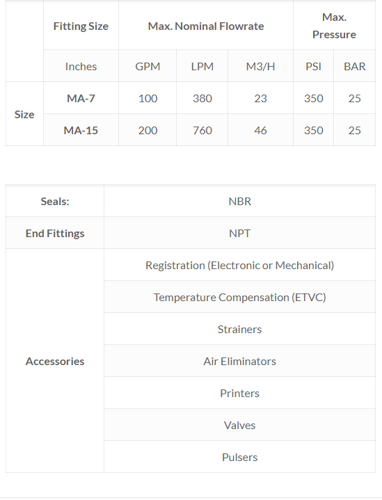 - Sustained accuracy: no wear from metal-to-metal contact inside the measuring chamber means almost no accuracy loss over time, fewer recalibrations, and longer lifetime. MA series meters comply with MID (European W&M standard) and other International Weight and Measures accuracy requirements.