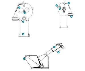 The machine is equipped with three flanges. One for feeding the unit at the upper part, a second one for the effluent discharge and one for the overflow outlet. The position of the supply flange is fixed. The other two can be installed either on the right or on the left, or underneath as far as the flange is concerned.