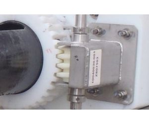 The worm gear assembly consists of a stand used to mount the handwheel or actuator, a shaft pipe to turn the worm gear, a wall-mounted worm bracket, a gear stop to avoid over-rotation, and a nylon worm that engages the UHMW-PE gear attached to the scum trough. The worm and gear half are both non-metallic to prevent increased wear caused by corrosion. All bearings are water-lubricated UHMW-PE to eliminate the need for grease lines, thereby lowering maintenance time and cost. The worm gear design provides a high mechanical advantage, decreasing the torque required by the operator or actuator.