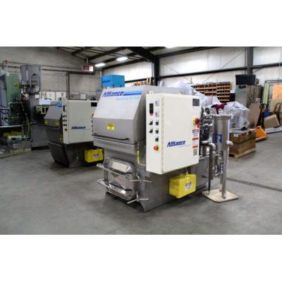 Our rotary table cabinet washers include many standard features not found with competitors’ machines: Direct-drive turntables, tank clean-out doors, solution level control with low water safety shutoff, and internal debris rinsing. One unique feature of Alliance cabinet washers is a centerless bearing turntable. The turntable is supported at the circumference, eliminating the need for a center bearing. This prevents a cleaning blind spot and allows the operator to load parts anywhere on the turntable with uniform cleaning results.