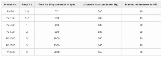 These pumps combine in them double features of suction & pressure and hence the same unit can be employed for either purpose. These have low oil consumption and are compact in design, noiseless & care free in operation and easily maintainable.