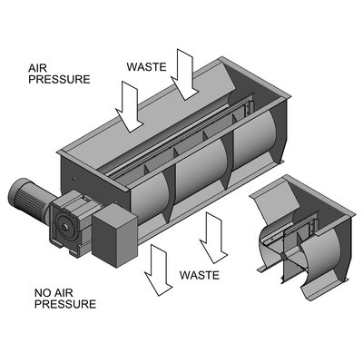 By fitting a large capacity Paramount waste extraction Rotary Valve to the Airscreen, the unit becomes completely insensitive to any variation in system pressure. Wear-resistant seals on each of the valve`s rotor blades successfully seal the entire system. This means that multiple conveying lines can feed one Airscreen, or filtration can be added without affecting the Airscreen`s performance.