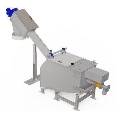 Once the upstream water level or differential level reaches a pre-set height, the screen will automatically enter a cleaning cycle. During the cleaning cycle the rotating rake lifts the collected solids to the upper vertex and drops it into the centrically arranged spiral press. This discharge movement is supported by the spray bar, which flushes off captured solids, furthermore an additional cleaning comb removes all remaining residues.