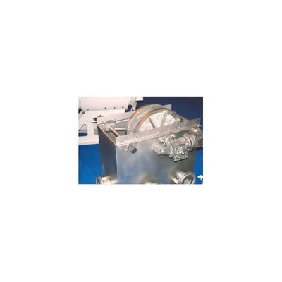 The drum may be driven by speed regulator to give the discs speeds from 2.4 to 12 r.p.m. . This way different flow may be worked with and change the dripping grade of the separated solids.