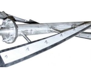 The reel assembly consists of two 180-degree spiral blades, mounted diametrically opposite on a center pipe, that form a skimming surface diameter of 18 Inches. As the reel rotates, rubber wipers attached to the spiral blades transfer scum up the beaching plate and discharge it into the trough. Reel assemblies can be provided clockwise and counterclockwise per the direction of the scum pit.