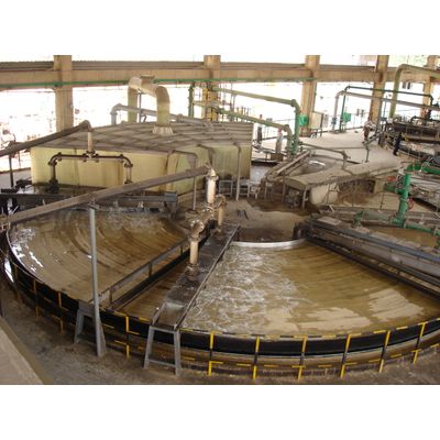 Rotating table type vacuum filters are used for handling of solids / liquid extraction, especially for the phosphate fertiliser industry. These complex filters have been made by Jiangsu New Hongda since 2000. In 2005 alone, there were 40 made for the domestic China market. A wide range of filter sizes is available, and the biggest size so far built is 240m2.