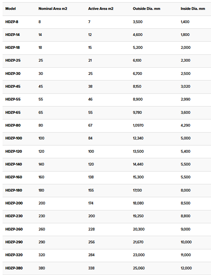 In comparison with the HDZP, standard tilting pan rotating filters (TP) have some key disadvantages :