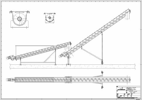The rotating screw conveyor is fitted with a spiral actuated by a motor reduction unit. The spiral is secured to the opposed end by a central hub and is fitted with adjustable supports with threaded bars. An inlet hopper and an outlet hopper ensure proper flow of the material. The screw is designed to collect the material from a screw and carry it to the outlet, where it drops into a storage container. Thanks to the shifting movement, the rotating screw discharges the material evenly on the entire container surface. The rotating screw conveyor can operate both in manual and/or automatic mode, through control from the electrical panel according to the operating needs.