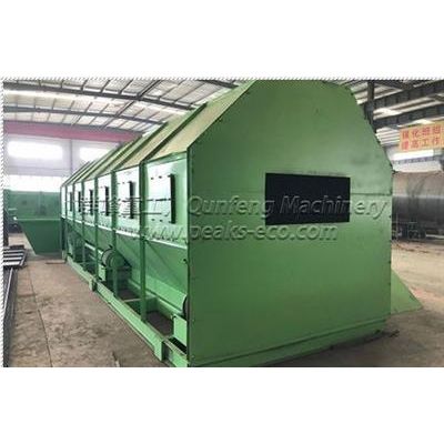 In this phase, trommel screen is to sort the waste by hole size of the long drum. Different sizes of the holes are sorting the materials of different types (less than 80mm for Inerts like sand, broken glass, ceramic and stone, 80mm to 200mm for recyclable plastics and 200mm to 300mm for paper and big plastics.). The individual parts behave separately parts having sizes lower than the diameter of the holes of the network sieving fall to the bottom of the machine, the parts having size greater than the diameter of the holes’ network sieving advancing upwards of the machine, following the rotational movement, in the direction of exit and fall into the discharge hopper arranged to the surroundings great.